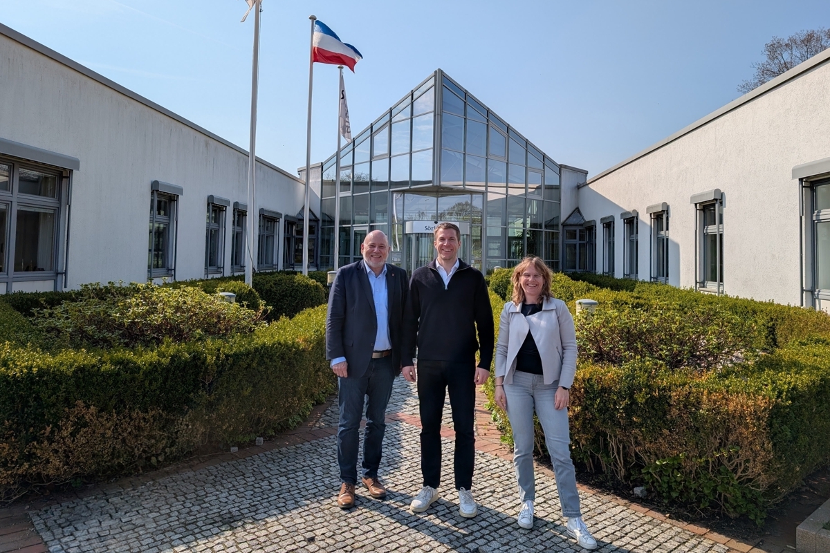 Quickborns Bürgermeister Thomas Beckmann, Simon Rossmann, Chief Executive Officer der Söring GmbH, und Wirtschaftsförderin Linda Vogt-Gröncke (Quelle: Söring GmbH)